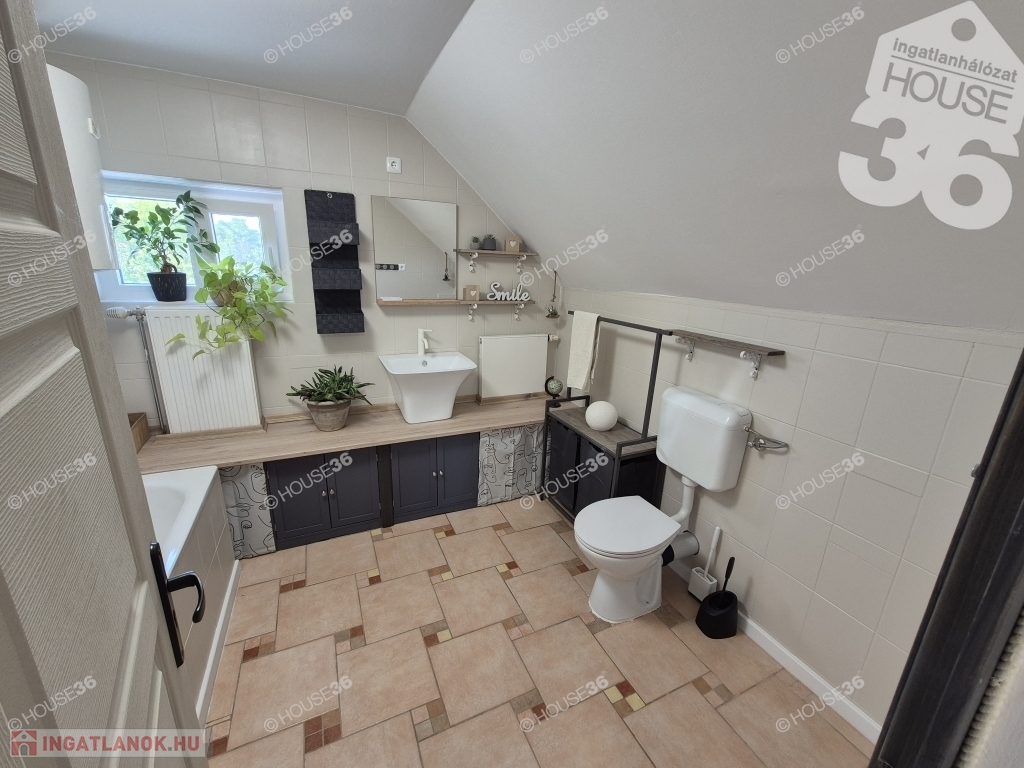 Szuterénben 34 m2-es pince, 135 m2-es lakótérrel két szinten, két generációnak tökéletesen megfelel, összesen 6 szobával két fürdőszobával.