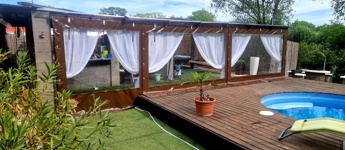 Továbbá az ingatlan területén 2 különálló, gondozott kert is található ahol: hangulatos filagória és medence wellness részleggel biztosítja a pihenést, egy természetes halastó: 20m × 10 méteres vízfelülettel várja a kikapcsolódásra vágyókat.