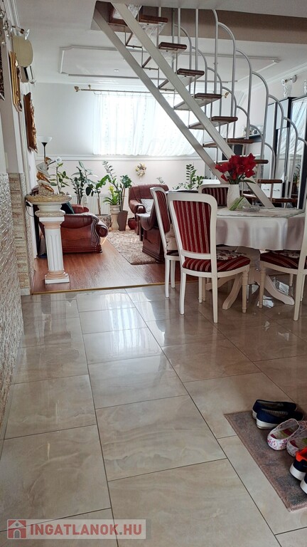 Nyíregyháza Malomkertben, a Kert utcán eladásra kínálok egy 75+28 m2-es, 4 szoba nappalis, tégla építésű, szigetelt, műanyag nyílászáróval, redőnnyel és reluxával szerelt,  belső szintes, harmadik emeleti társasházi klimatizált lakást, mely világos, tágas terekkel rendelkezik. A fürdőszoba és wc külön helyiségben helyezkedik el.  Laminált padló és csempe burkolatú. Fűtése: egyedi gázfűtés. Az alsó szinten van: 2 hálószoba, nappali, konyha, kamra, fürdő, wc. A tágas fürdőszobában fürdőkád és zuhanykabin. A felső szinten 2 hálószoba. A lakáshoz egy kisebb erkély és egy tágasabb terasz tartozik. Közös tároló. A mélygarázsban autóbeálló bérelhető. A társasház jó elhelyezkedésű, kedves szomszédok, jó lakóközösség. A lakás igényes, modern kialakítású, tehermentes.Az ingatlan azonosítója: 98013Érdeklődni: +36703610015 Az ingatlan azonosítója: 98013 Érdeklődni: +36703610015