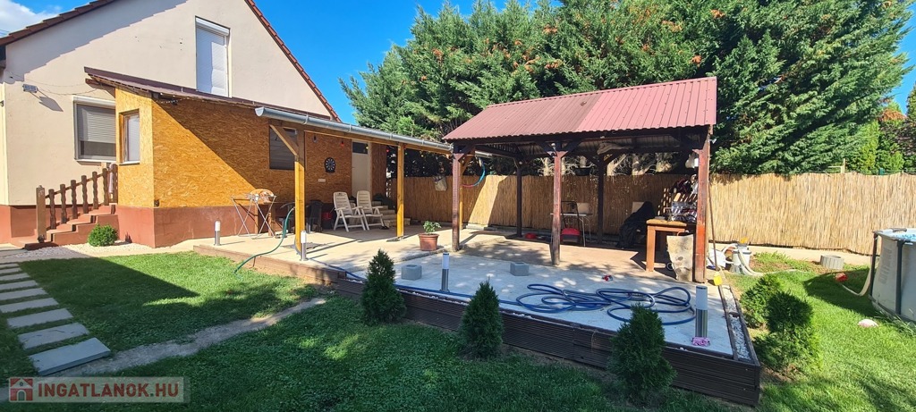 Nyíregyháza Sóstóhegyen eladó egy kiváló állapotú, szilikát és tégla építésű családi ház, amely 1528 m²-es, rendezett telken helyezkedik el. Az ingatlan praktikus elrendezésű: 2 szoba, 2 félszoba, tágas nappali, konyha és étkező biztosítja a kényelmes mindennapokat. A ház cseréptetővel épült, alatta pince található. A fűtés egyedi gázkazánnal, illetve vegyes tüzelésű kazánnal is megoldható, így gazdaságosan fenntartható. A házhoz tartozik garázs, fedett autóbeálló, valamint egy hangulatos fedett terasz is, ami kiváló helyszíne lehet a családi és baráti összejöveteleknek. Az udvar rendezett, kerti tó is kialakításra került, ami tovább emeli a kert hangulatát. A nyílászárók műanyagból készültek, redőnnyel felszereltek, a komfortot pedig 2 darab klímaberendezés is növeli. A beépített konyhabútor a vételár részét képezi. Az ingatlan egy csendes, forgalomtól mentes utcában található, így ideális választás családosok vagy nyugalomra vágyók számára. Ha egy jól karbantartott, minden igényt kielégítő otthont keres Sóstóhegyen, ne hagyja ki ezt a lehetőséget!Az ingatlan azonosítója: 98570Érdeklődni: +36703610015 Az ingatlan azonosítója: 98570 Érdeklődni: +36703610015
