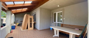 30 m²-es fedett terasz nyújt kiváló lehetőséget a kikapcsolódásra és családi összejövetelekhez.