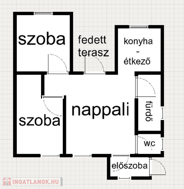 •Elrendezés: nappali + konyha-étkező + 2 hálószoba fürdő + külön WC