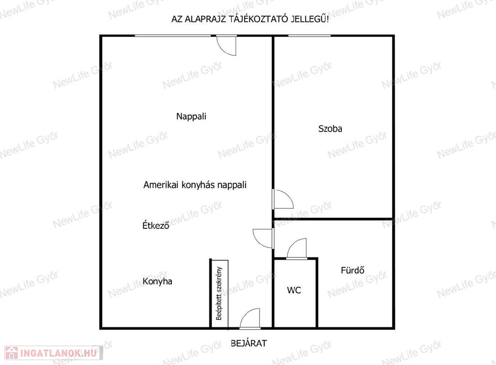Elrendezés: amerikai konyhás nappali (20,1 m²) + hálószoba (10,4 m²)