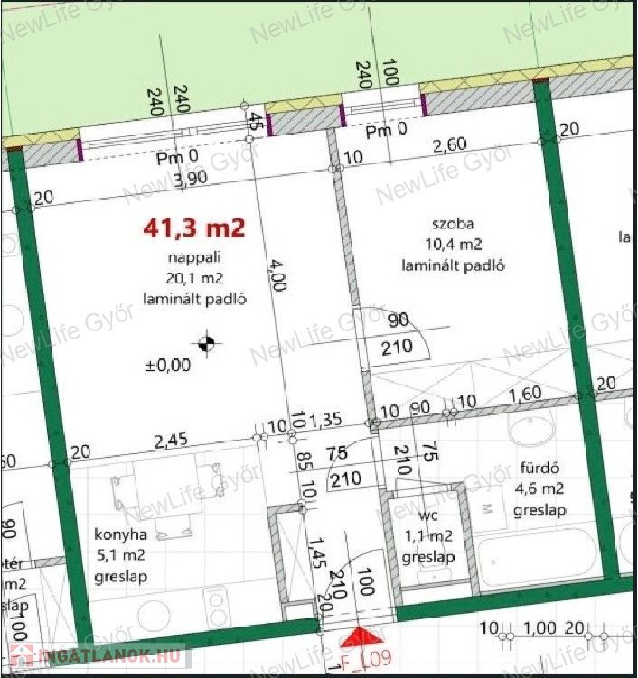 Teljes alapterület: 41,3 m²