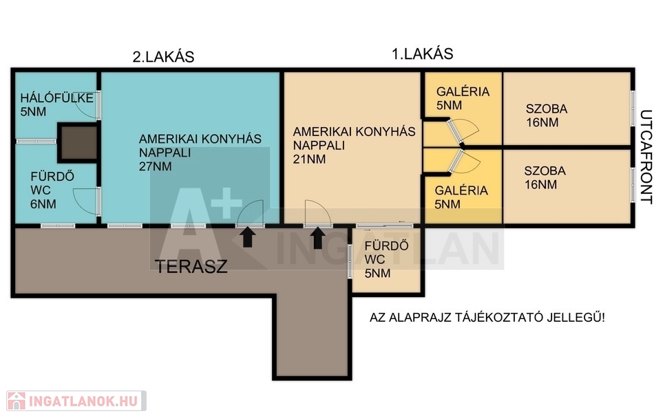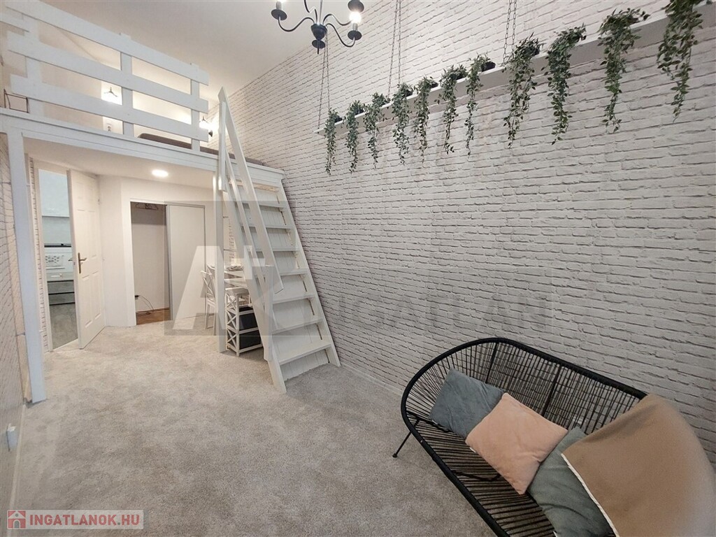 amerikai konyhás nappali és két galériázott hálószoba, tusolós fürdőszoba, 60nm