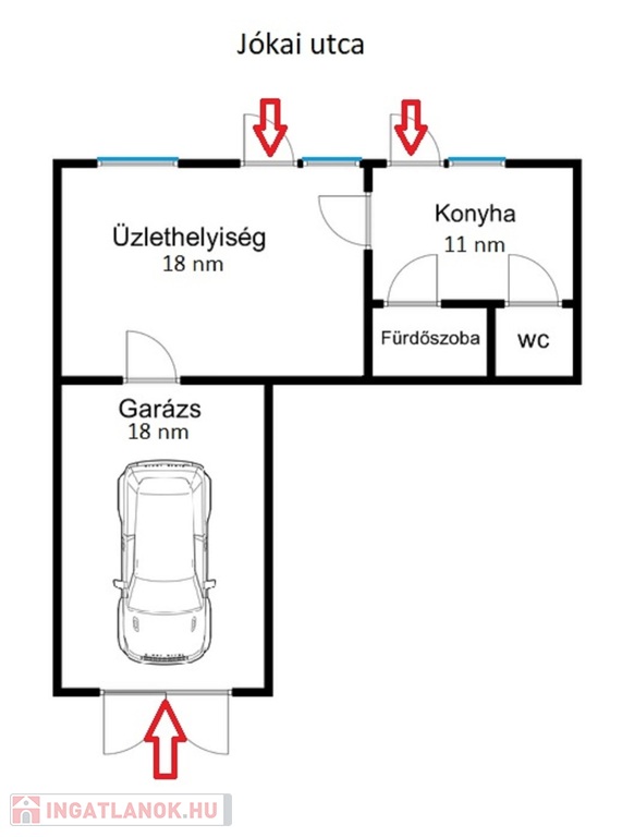 A két üzlet 11nm és 18nm, a garázs szintén 18nm.