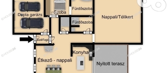 35 m²-es elektromos kapus dupla garázs (2 autó részére) További 6 autó számára felszíni beálló, elektromos kapunyitással, illetve 1 db különálló garázs