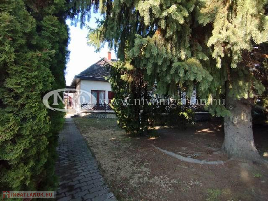 Veszprém-Szabadságpusztán, csendes, nyugodt utcában, 1345 m2-es körbekerített, parkosított telken, ’90-es években épült, tégla építésű, magasított tetőtér beépítéses családi ház.