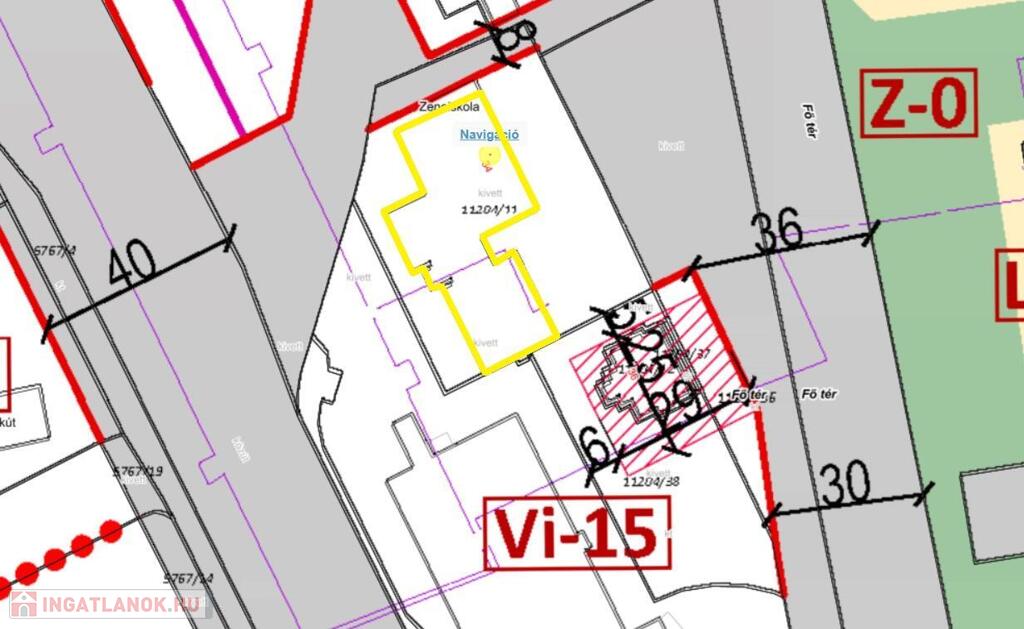 • Övezet: Vi-15 (Intézményi terület) – szinte bármilyen tevékenységre alkalmas (egészségügyi, oktatási, kereskedelmi, szórakoztató, sport).
