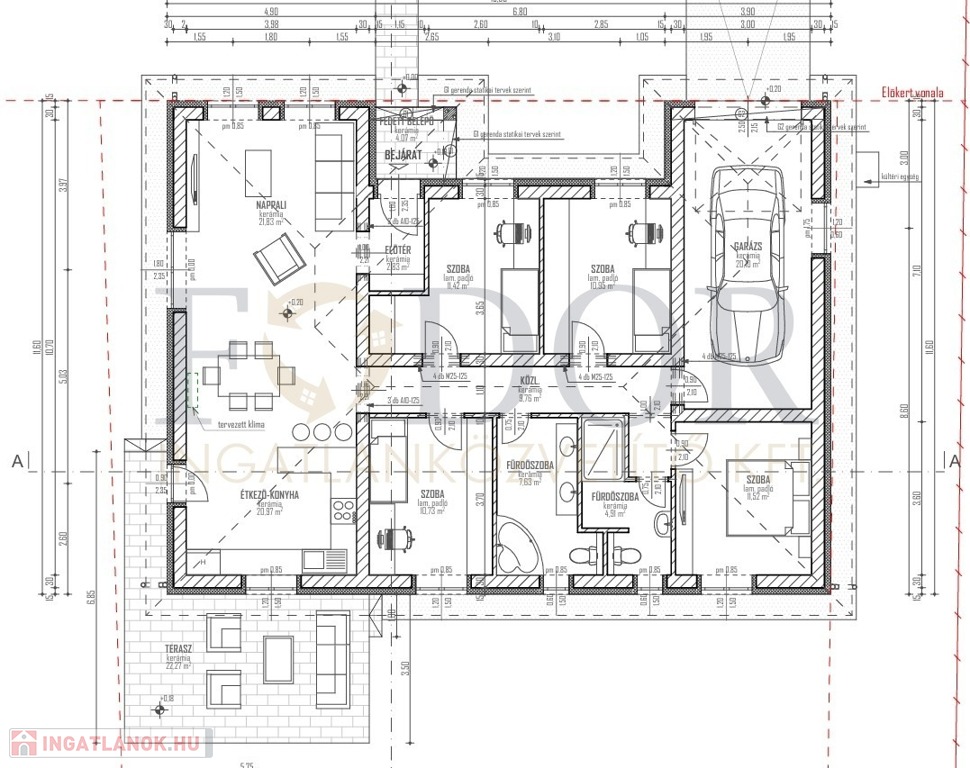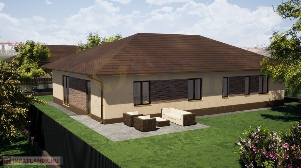 A 137 m²-es ház amerikai konyhás nappalival, négy külön nyíló hálószobával és két fürdőszobával készül, így kiválóan alkalmas nagyobb családok számára is.