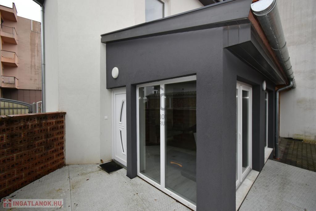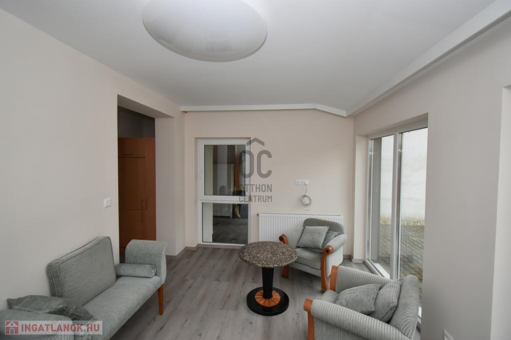 A földszinti, utca fronti és hátsó bejárattal is rendelkező akadálymentesített lakás 78 m2-es, amerikai konyhás nappali, szoba, fürdőszoba + WC, előszoba, terasz helyiségekből áll.