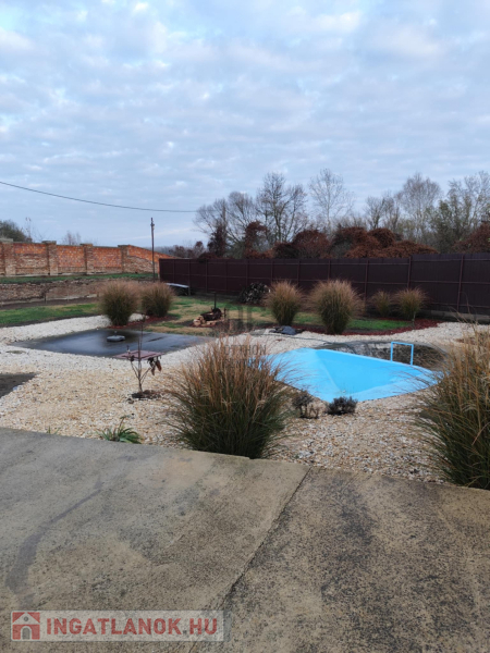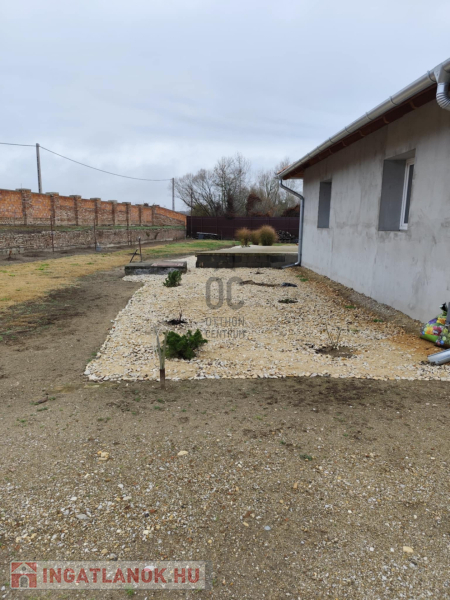 Egy 2 szoba konyha, étkező, fűrdőszoba, WC-s ház alapja, melybe már a vllany, viz, és szenyvízcsatorna kiépítése is megtörtént.