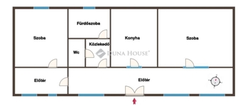 Jelenlegi elrendezése szerint két nagy szoba, egy étkezős konyha, egy fürdőszoba, egy külön wc, egy közlekedő, és egy előtér helyiségek találhatóak benne, de elrendezése remekül optimalizálható, a szobák száma is növelhető. Az épület oldalirányban bővíthető is.