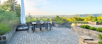 Esztergom Aranyhegyen, a belvárostól mindössze 2 perc vezetésre, csendes, természetközeli környezetben eladó egy 4326m2-es, a városra, a Bazilikára, és a Dunakanyar felé is örök panorámás birtok, 30m2 lakóteret kínáló, magas minőségben felújított házikóval, újszerű állapotú melléképületekkel, lakóház számára további 150m2 beépíthetőséggel.