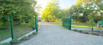 A két utca felől is megközelíthető birtok újszerű kerítéssel teljesen körbekerített, gépkocsibeállás elektromos, távvezérelt gépkocsikapun keresztül történik. A területen tulajdonosa az összes szükséges földmunkát elvégezte, így bár lankás a terület, annak szinte minden négyzetcentimétere jól használható.