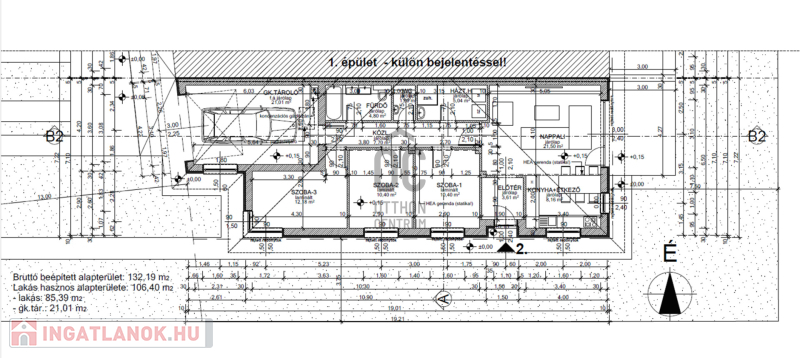Az ingatlan beépített területe : 108 m2 + egy : 15 m2 - es terasz tartozik hozzá.