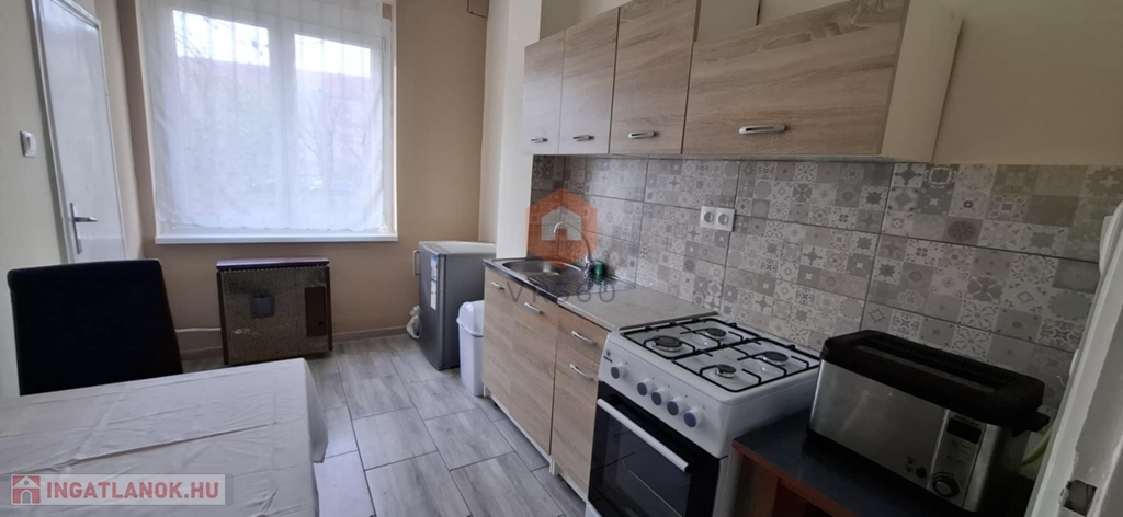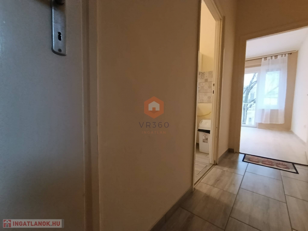 Elrendezés: 1 szoba + beépített konyha, előtér, fürdőszoba, külön WC, tároló