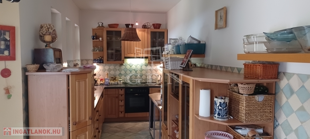 Az ingatlanban hatalmas átriumos nappali, 8 szoba, 4 fürdőszoba, 3 konyha, télikert , külső kertkapcsolatos terasz, a pinceszinten mosókonyha, kazánház és tároló - háztartási helyiségek, a kertben boros pince szolgálja a lakók kényelmét.