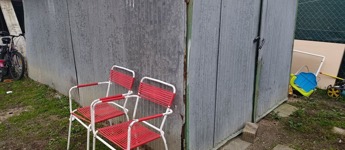 Az udvar igazi kincs: egy 25 m²-es nyári konyha várja a közös főzéseket, baráti sütögetéseket, mellette fém tároló és többállásos kocsibeálló is helyet kapott. A kertben könnyedén kialakítható egy kis pihenősarok, virágoskert vagy akár egy veteményes is.