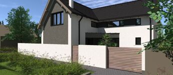 - Homlokzat teljes kiképzése nemes vakolattal/kültéri deszkaburkolattal.