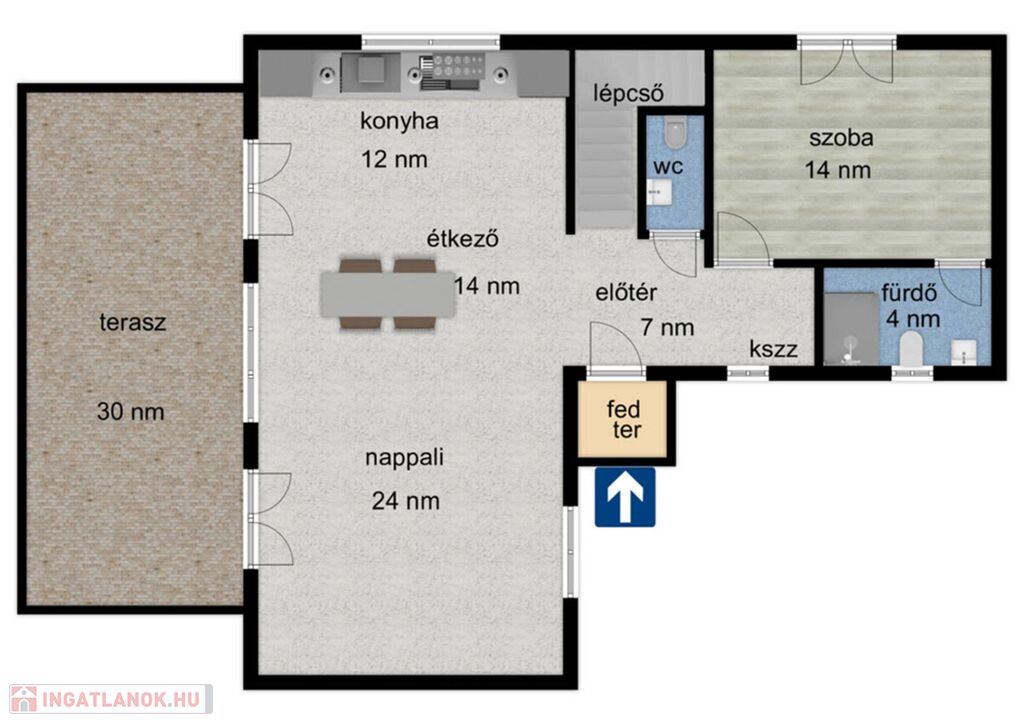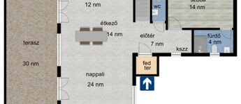 - Amerikai-konyhás nappali, 4. hálószoba, 2. fürdőszoba, WC, háztartási helyiség, hatalmas terasz.