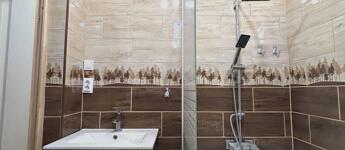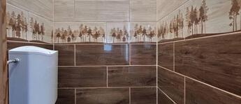 A belső tér világos, tágas, igényesen felújított – a nappaliban modern lámpatestek és meleg hatású burkolat teremtenek otthonos hangulatot.