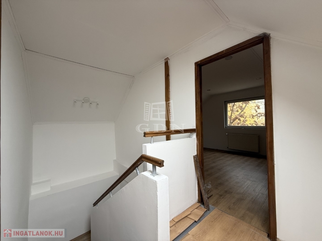- földszint: kialakításra került előtér, tágas nappali- konyha étkező, 1 szoba, vendég wc, háztartási helyiség kamra,
