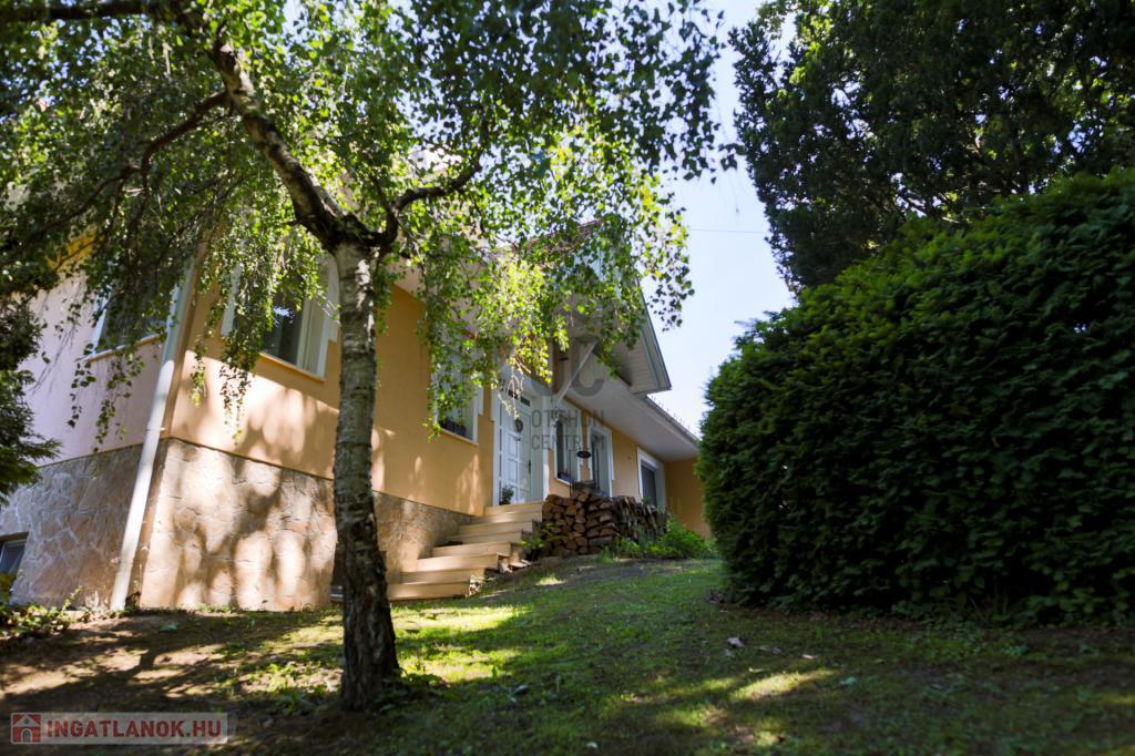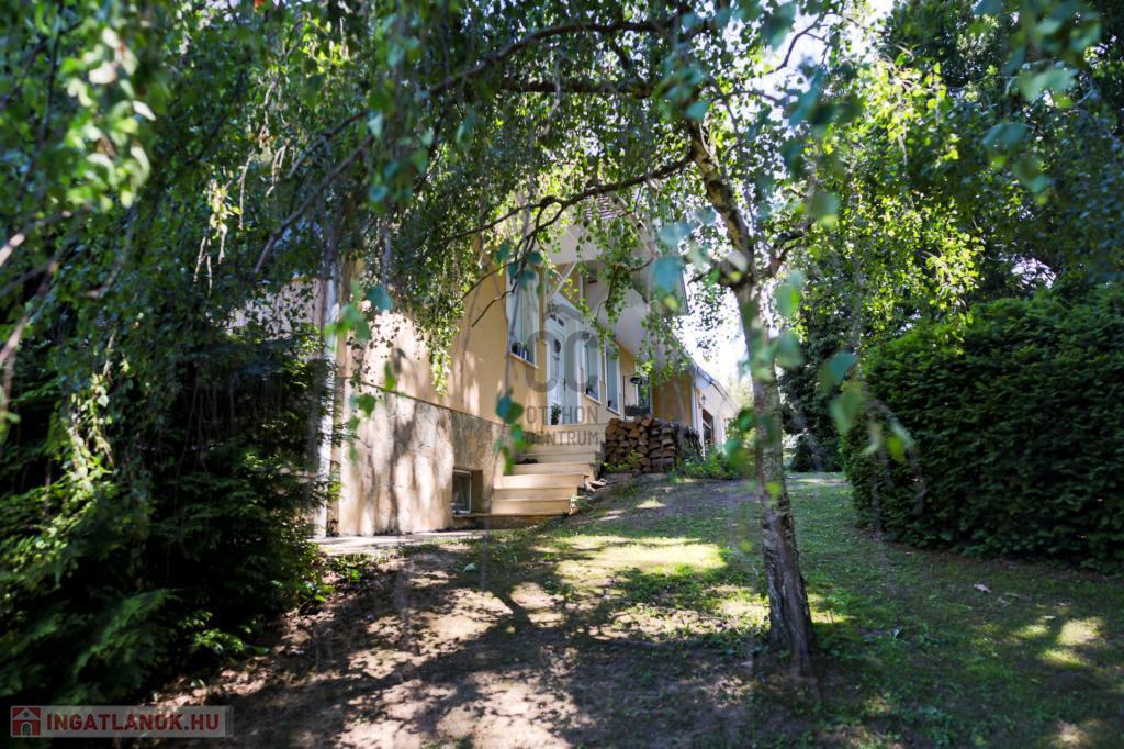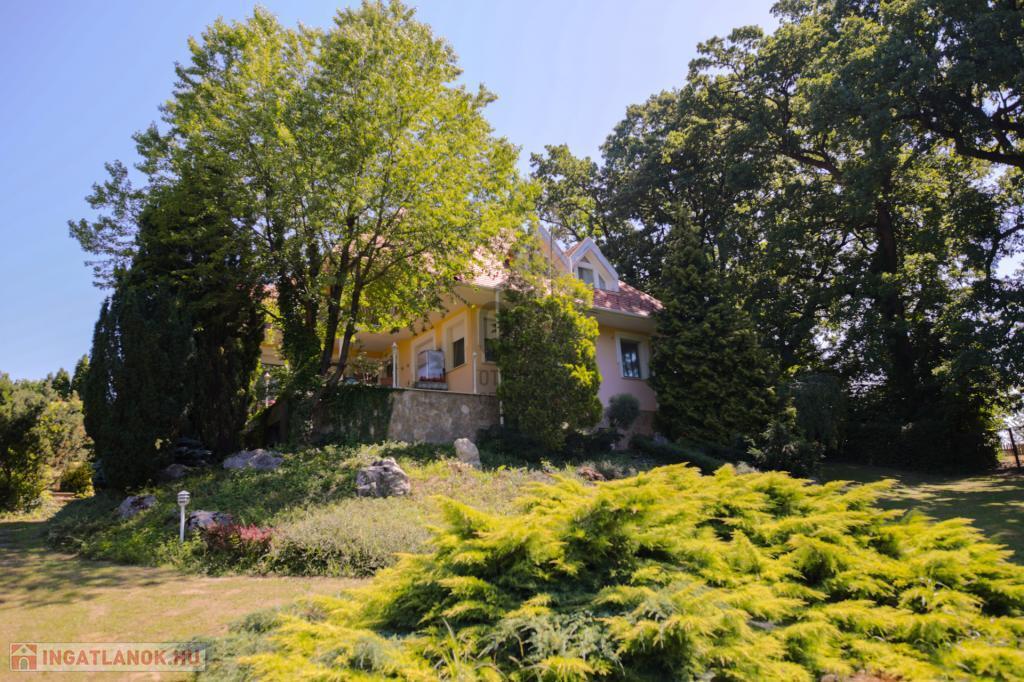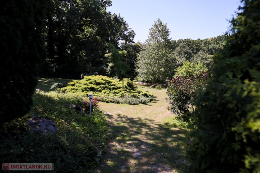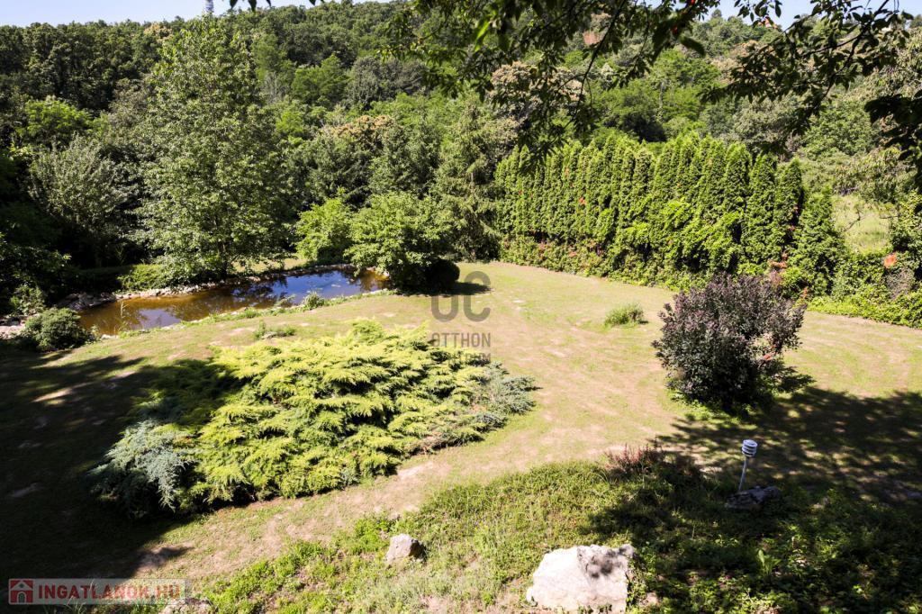 Felső részére épült a három szintes ház, a középső részen gondozott, hangulatos kert, halastó, az alsó részen pedig saját kis erdő.