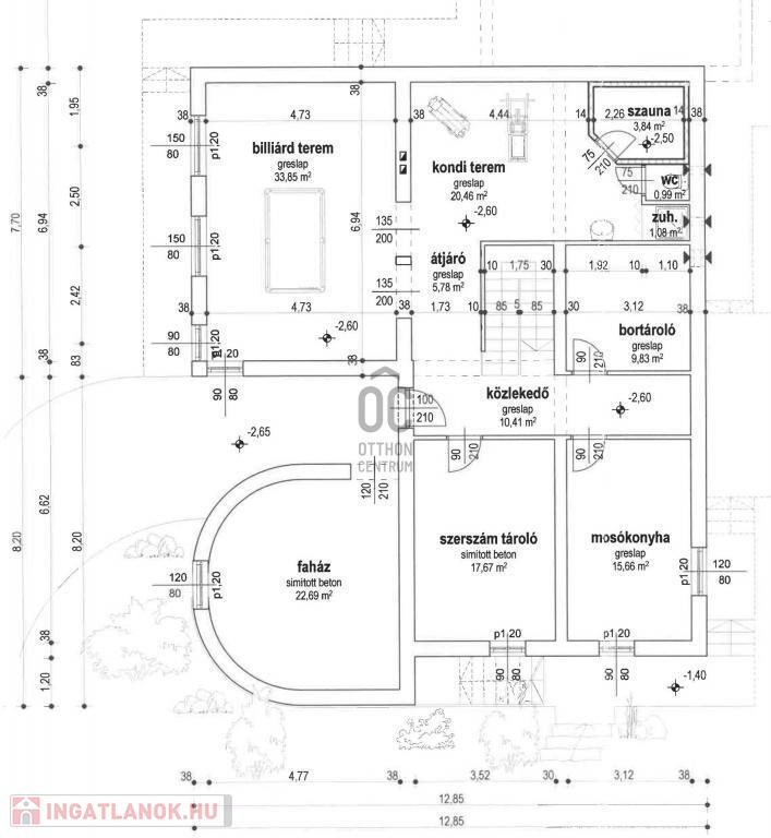 Itt található egy biliárd szalon, szauna, bor tároló, kondi terem, vizes blokk, mosókonyha és egyéb tárolók.