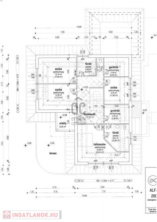 A tetőtéri szint nettó 92,52 m2-es, bruttó 120,15 m2, ezen kívül egy 6,25 m2-es erkély került kialakításra, 4 négy szobával, kettő fürdővel és kettő gardrób szobával.