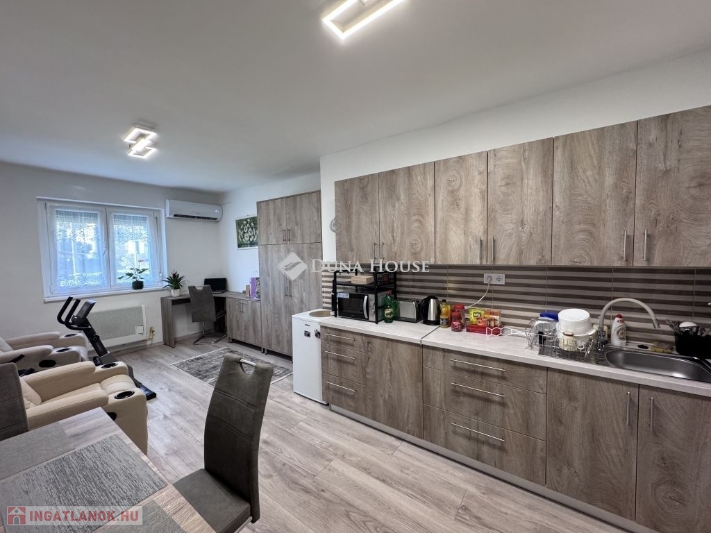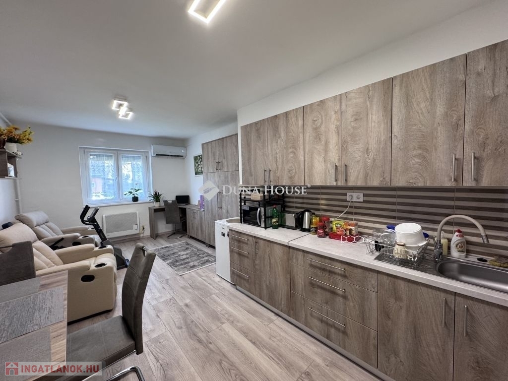 Komlón, a Petőfi téren eladó egy teljes körűen felújított, 26 m²-es garzonlakás berendezéssel együtt!Az ingatlan tehermentes, azonnal költözhető.A lakás jellemzői:Teljeskörű felújításÚj konyhabútor és új fürdőszobaÚj műanyag nyílászárókFűtés: klíma + gázkonvektorA komplett berendezés és bútorzat a vételár részét képeziKiváló választás első lakásnak vagy befektetésnek egyaránt!