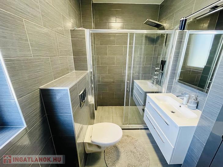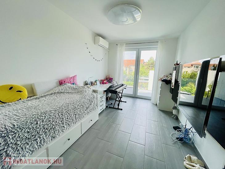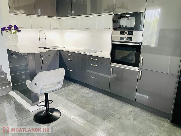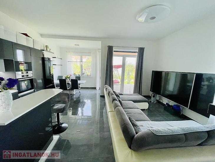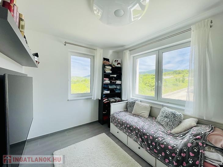 Egy kiváló elrendezésű, 117 nm -es ikerházfél a város egyik legcsendesebb, családbarát utcájában, 500 nm-es saját telekrésszel. Az ingatlan különlegessége a gyönyörű panoráma a Naszály hegyre.