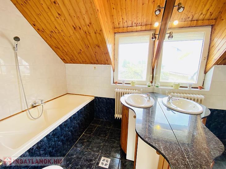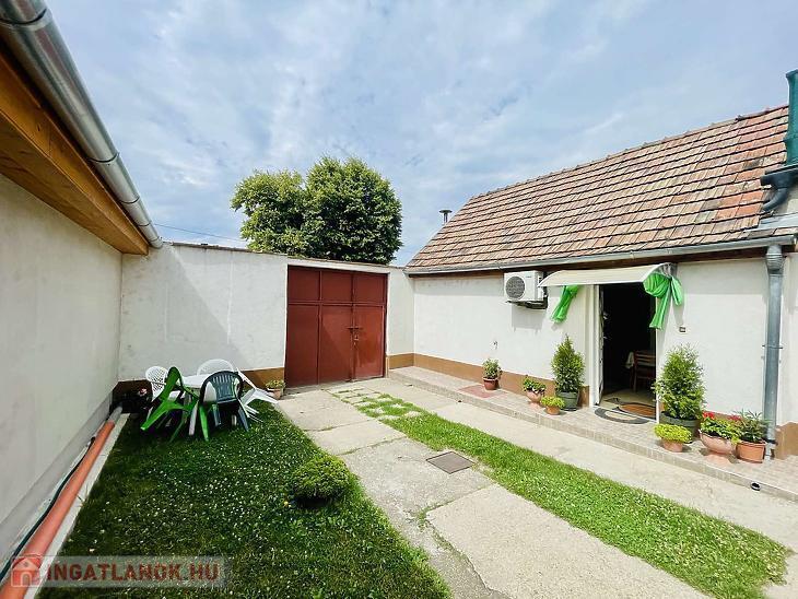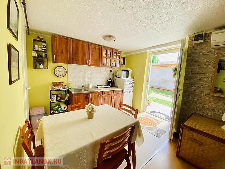 A hátsó kertben található egy garázs saját pincével, illetve egy különálló, szoba–konyha–fürdőszoba elosztású kis ház is, amely vendégházként vagy önálló lakrészként is kiválóan hasznosítható. A kisházban szintén beépítésre került egy hűtő-fűtő klíma, így az ott lakók is élvezhetik a kényelmes hőmérsékletet minden évszakban.