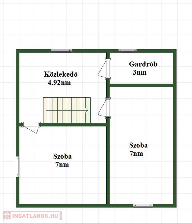 Emelet: közlekedő, 2 hálószoba, gardróbszoba