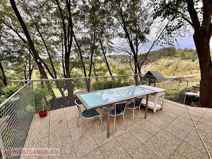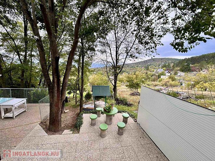 Az igazi különlegességet azonban a közel 70 m²-es panorámás terasz és a csodás, közel 2000 m²-es, gyümölcsfás, gondozott telek jelenti. A teraszról elénk táruló látvány minden évszakban lenyűgöző.