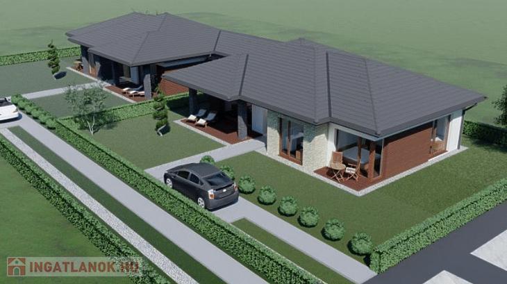 Amerikai konyhás nappali + étkező, 3 szoba, háztartási helyiség, fürdő+wc, előszoba, 2 db fedett terasz, nyári konyha.