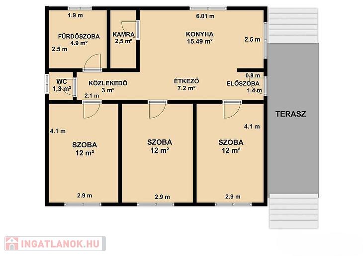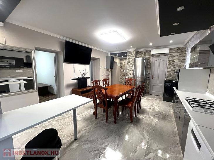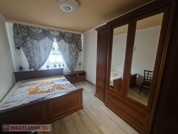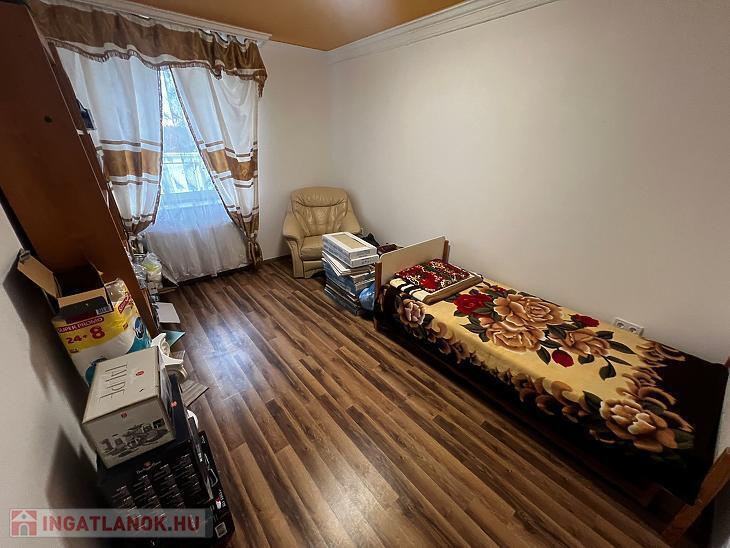 3 szoba, konyha + étkező, zuhanyzós fürdőszoba + mellékhelyiség, mellékhelyiség, kamra, közlekedő.