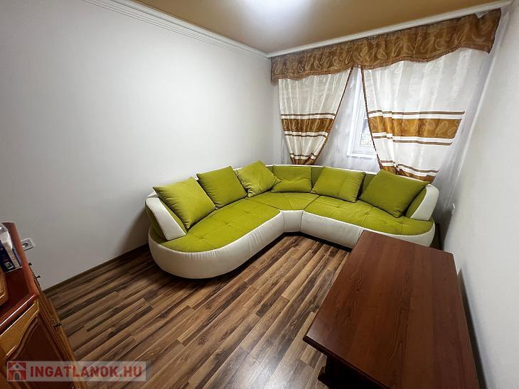 A szobákban a burkolatok laminált parkettásak, míg a többi helyiségben hidegburkolat található.