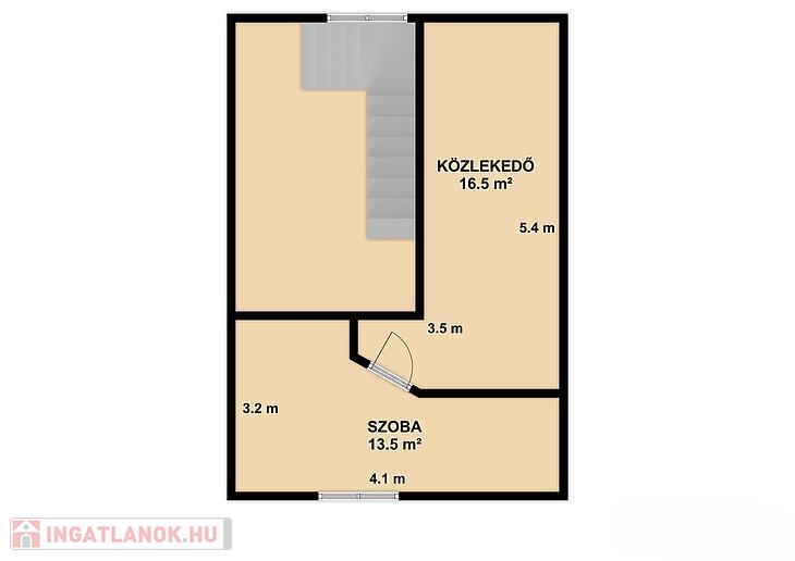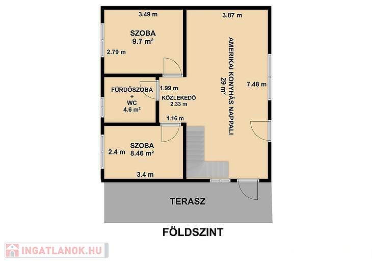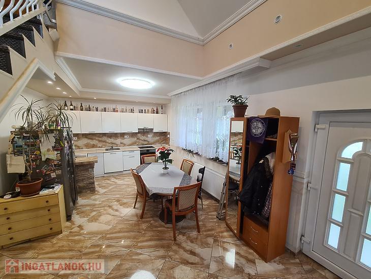 Földszint: 2 szoba, amerikai konyhás nappali, zuhanyzós fürdőszoba + mellékhelyiség, közlekedő