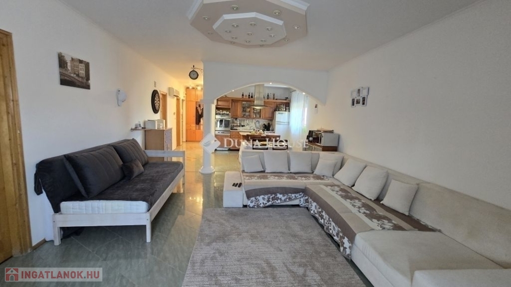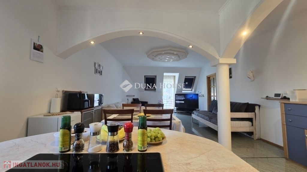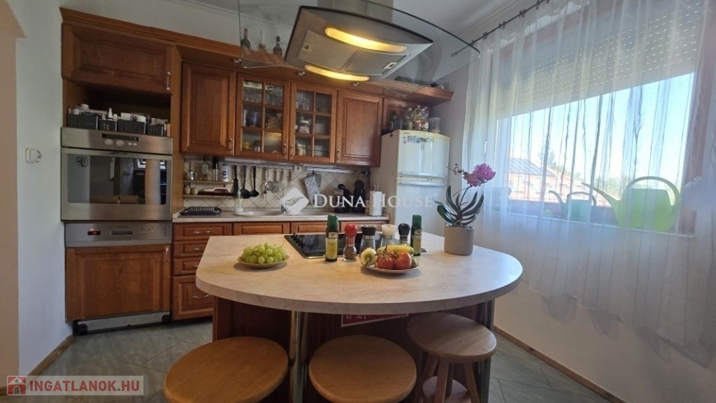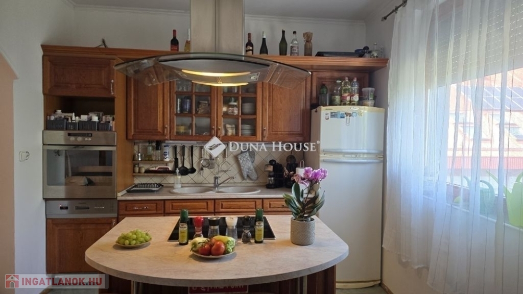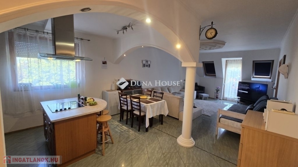 A konyha és az étkező egy légtérben helyezkedik el, így főzés közben sem kell elszakadnia a családtól vagy a vendégektől. Az ingatlant gondos tervezéssel és odafigyeléssel alakították ki, ezáltal minden egyes négyzetmétert maximálisan kihasználva.