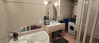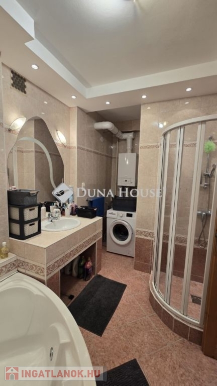 A fürdőszoba modern felszereltségével és esztétikus kialakításával szolgálja az otthon lakóinak kényelmét. Minden részletében a funkció és a stílus egyensúlyát tartották szem előtt, hogy a napi rutinok is kellemes élménnyé váljanak.