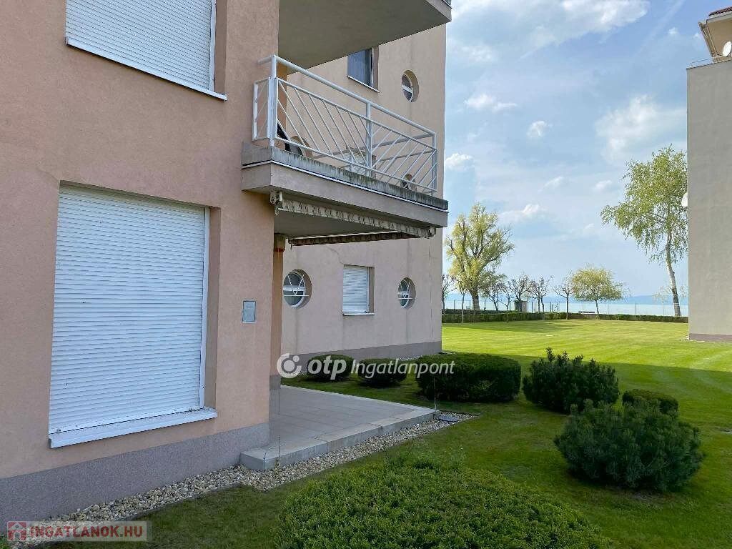Balaton déli parton, Siófokon 45 m2 lakás eladó. Az ingatlan az Aranyparton, közvetlen vízparti lakóparkban helyezkedik el, földszinten, kertkapcsolattal. A két szobás lakás újszerű állapotban van, jól karbantartott, beépített konyhabútorral, beépített szekrényekkel felszerelt. A nappalihoz egy 9 m2-es terasz kapcsolódik. A lakótérben hűtő-fűtő klímaberendezés, a nyílászárókon redőny és szúnyoghálók, a teraszon napellenzők kerültek felszerelésre. Az ingatlanhoz tartozik egy felszíni parkoló telken belül, melyet a vételár tartalmaz. A lakásban riasztóberendezés működik, a fűtés és meleg víz ellátás kombi gázkazánról biztosított, minden közmű egyedi mérővel mért. A lakáshoz vásárolható egy 1,5 m2-es tároló helyiség az épület földszintjén. A társasház parkosított területen helyezkedik el, saját kijárattal rendelkezik a szabad strandra.
