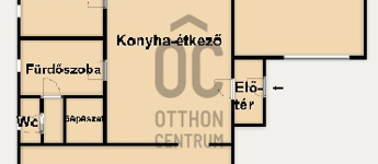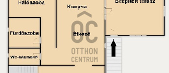 Magasföldszint helyiségei: beépített terasz/ előszoba, konyha-étkező, nappali, hálószoba, fürdőszoba, wc, terasz.