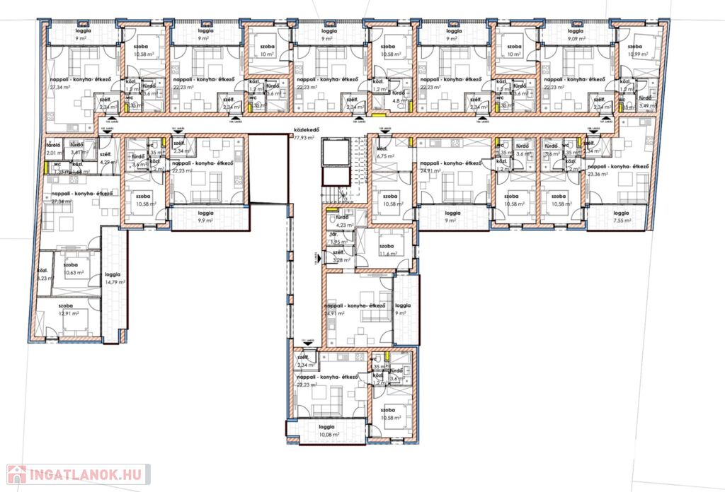 A 1 db amerikai konyhás nappalival, 1db hálószobával, 1 db fürdőszobával, közlekedővel, loggiával rendelkezik.