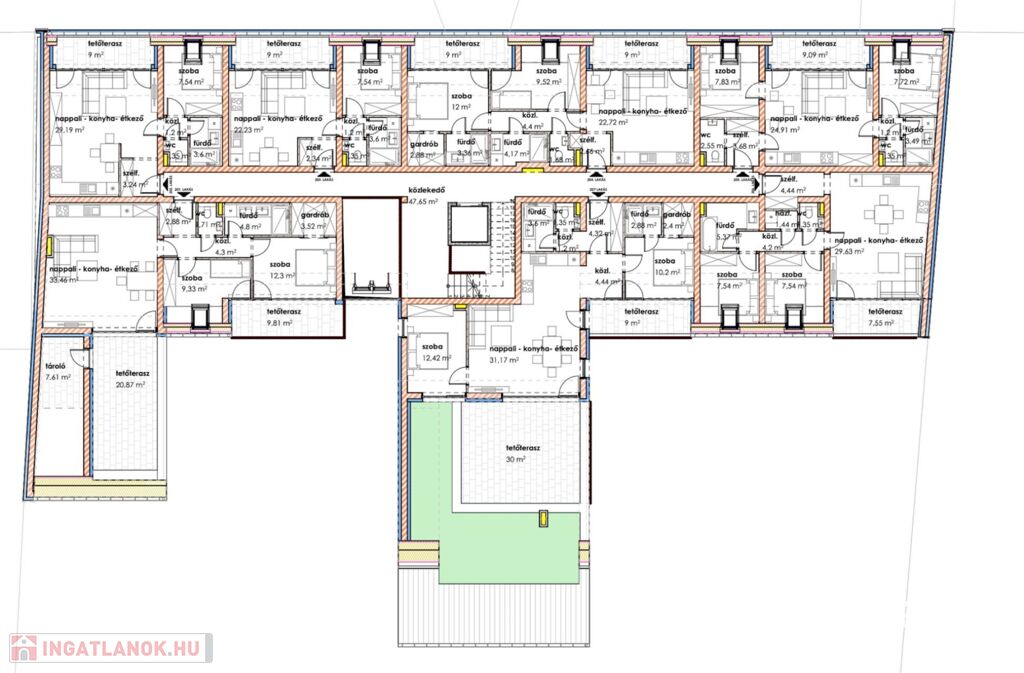 Makón, presztizs lokációval rendelkező - Makói fürdőtől 30 méterre - a Szent János téren - A Napfény Residenceben - , Eladó egy most induló, tégla építésű, ELSŐ EMELETI , 69 nm-es élettérrel rendelkező, amerikai konyha nappali plusz két szobás loggiás tégla lakás (206.lakás).