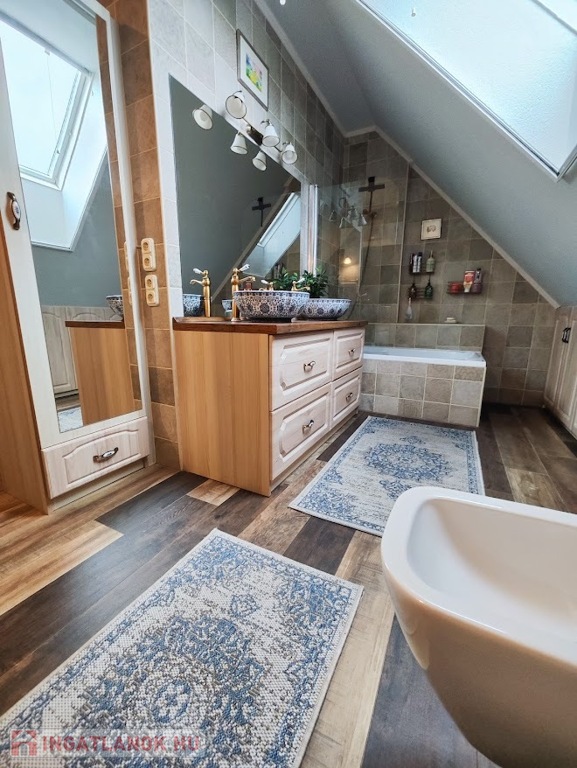 Rezsi - a jelenlegi használat mellett a teljes havi rezsiköltség (víz, gáz, villany, hulladék) kb. 20 000 Ft, ami a mai viszonyok között kifejezetten alacsonynak számít, a ház valóban rezsibarát.