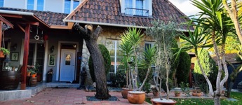 ???? Az utca egyirányú, csendes, a környék biztonságos és barátságos. A ház dél–nyugati tájolású, ami kifejezetten kedvező: a nappali és a teraszok napfényesek, a kertben egész nap található napos és árnyékos időszak is, így nyáron és télen is jól használható a kültér.