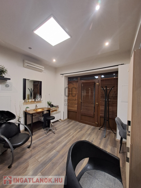 A ház földszintjén található egy külön bejáratú, 19 m²-es nagyságú fodrászüzlet is, amelyből összeköltözők esetén akár külön lakrész kialakítására is van lehetőség.