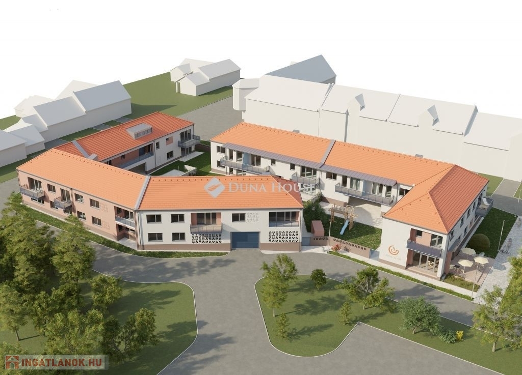 Szigetváron, 2026 év végéig kiváló minőségben, modern gépészettel(levegő-víz hőszivattyú padlófűtéssel) felépítésre kerül 5 épületegyüttesben, 3 ütemben 22 db lakás és 1 db üzlethelyiség, parkosított belső udvarral.