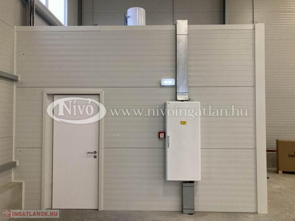 A raktár 8 cm-es szendvicspanelből épült, nem fűtött, de fagymentes. Aljzata ipari beton, nagy teherbírású. 3 db ipari kapuval (4mx4m) ellátott, vállmagasság: 7,5 m. Az ingatlan 11 db kamerával felszerelt, biztonsági rendszer kiépített. Az ingatlanon kívül külső világítás is van. Elektromos áram ellátása: 3x80 A.